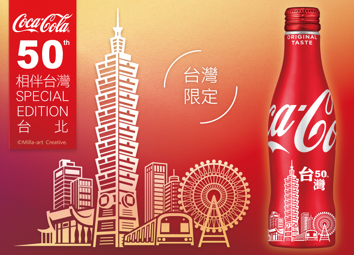 可口可樂歡慶在台50周年紀念罐瓶身插畫_101紀念禮盒